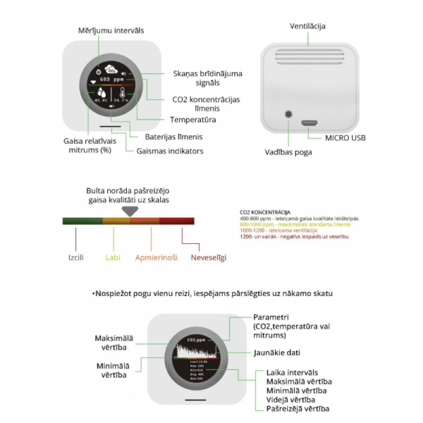 LUXAFOR CO2 MONITOR - air quality, temperature, humidity