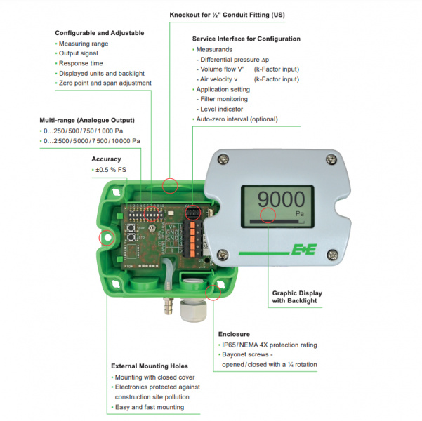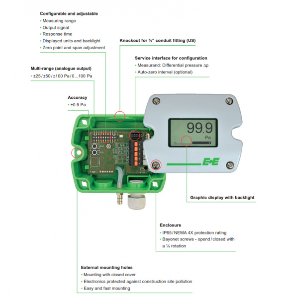 Differential pressure sensor for energy savings from E+E