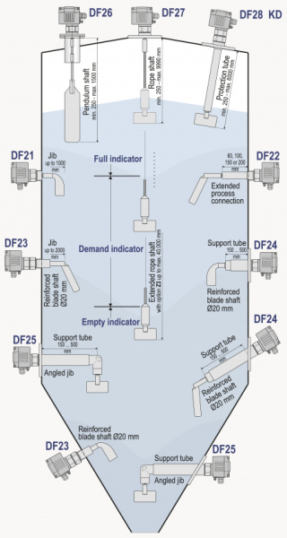 DF25C5F2T1LR200W00 Rotējošais līmeņa slēdzis, 24Vdc, Process -25...+260 C, flancis 150x150mm, lāpstiņa 98x50, Pagarinājums 200mm DF25C5F2T1LR200W00 Mollet