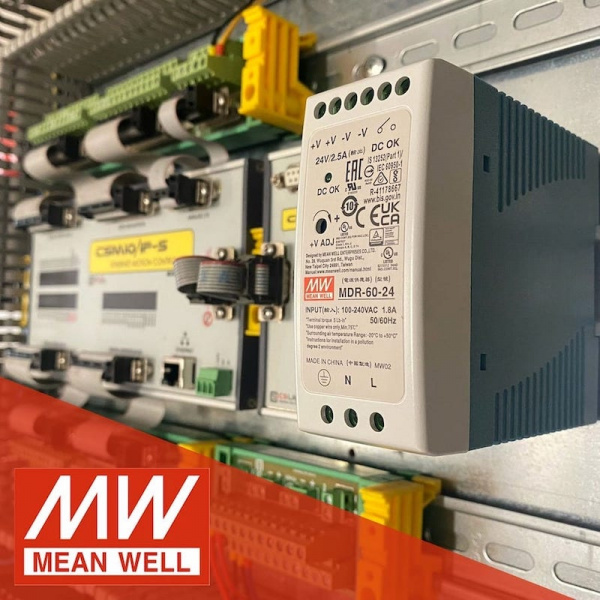 Power supply 110-230V AC to 24V DC, 2.5A, 60W, MDR-60-24 Mean Well
