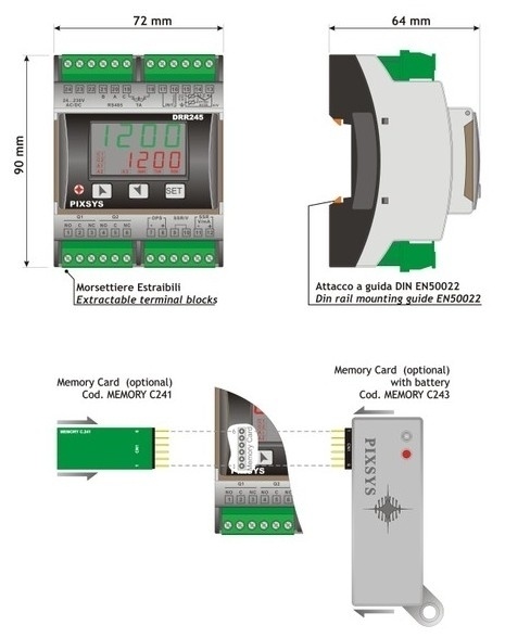 PID controller 24-230V AC/DC, RS-485, DRR245-21ABC-T Pixsys