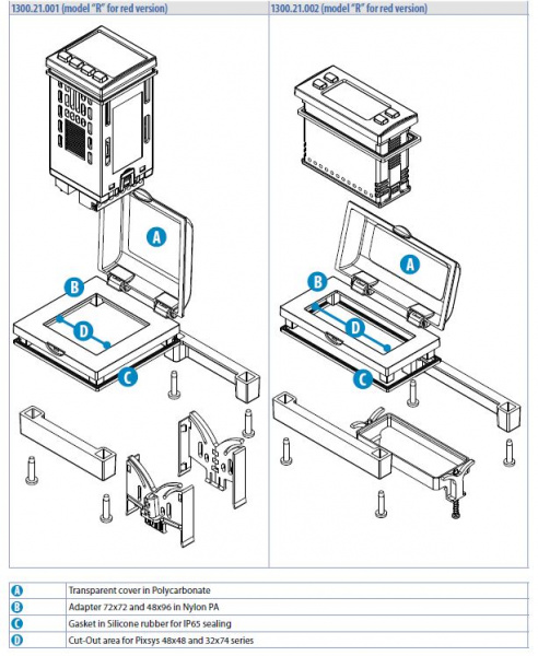 Protection cover 32x74mm RED Cut-out 48x96 - IP65, 1300.21.002R Pixsys