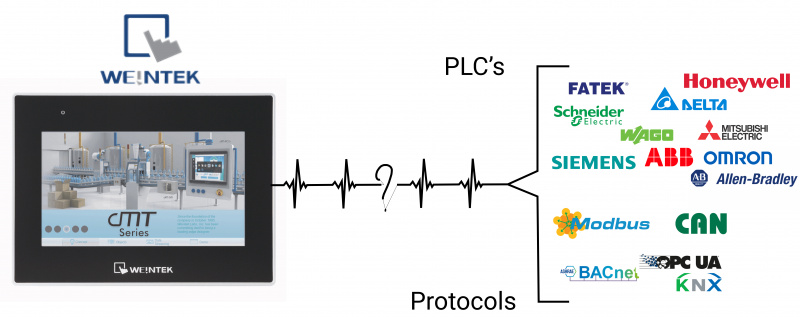 HMI panelis 7'', 800 x 480px, 32-bit RISC 600MHz, USB Host / RS232 / Ethernet, MT8071IP Weintek