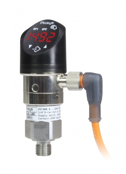 DST400 Pixsys spiediena sensors un slēdzis |0..100 Bar / Ceramic / Out 4..20 mA - 0..10 V / 2 x PNP izejas 200042108 Pixsys