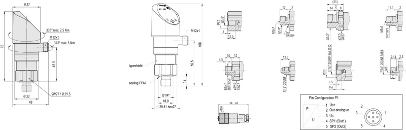 DST400 Pixsys spiediena sensors un slēdzis |0..400 Bar / thin film on steel / Out 4..20 mA - 0..10 V / 2 x PNP izejas 200043111 Pixsys