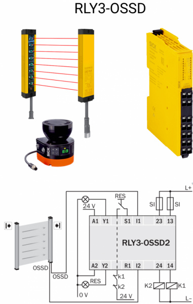 ReLy series safety relays for OSSD and EMSS devices from SICK