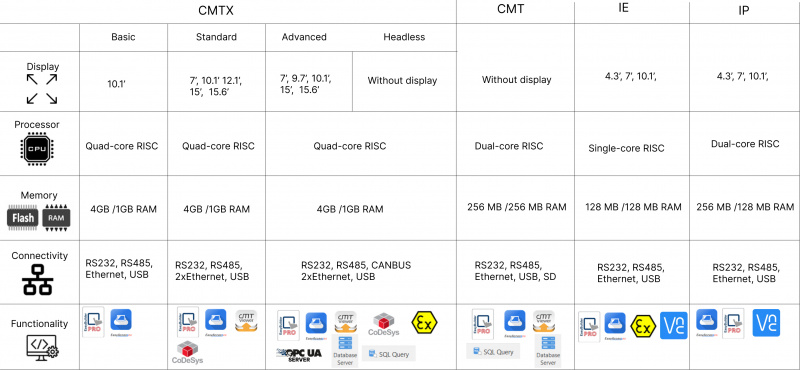 HMI panel 7'', 800 x 480px, ARM Cortex A35 1500MHz, Ethernet 2x / USB Host / RS232 / RS485 / CanBus, cMT3072X Weintek