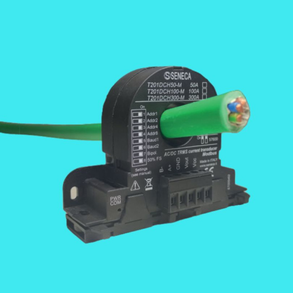 T201DCH600-MU AC/DC C.T. (± 600 A), TRMS, 0..10V, PNP alarm, Modbus, USB + DIN rail plastic clips T201DCH600MU Seneca