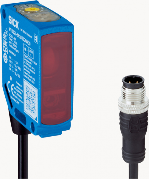 WTM12L-34161820A00 Photoelectric proximity sensor, MultiMode, Sn=30mm ... 420mm, Push-pull: PNP/NPN, Cable with M12 male connector, 4-pin, 31.5 cm 1126054 Sick