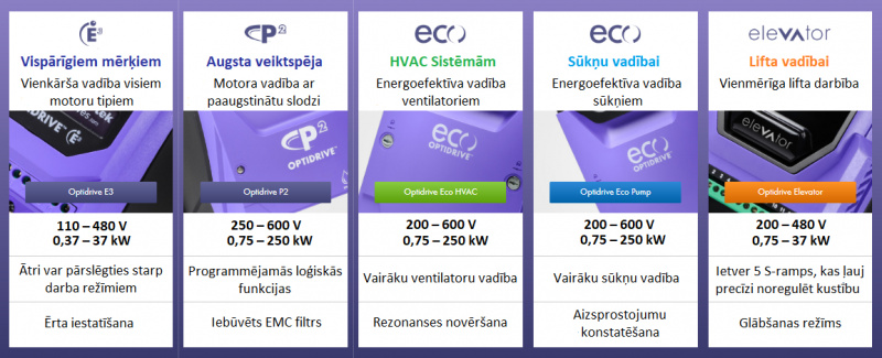 Zemāk piedāvājam apskatīt mūsu ilggadēju sadarbības partnera Invertek Drives frekvenču pārveidotāju sērijas: