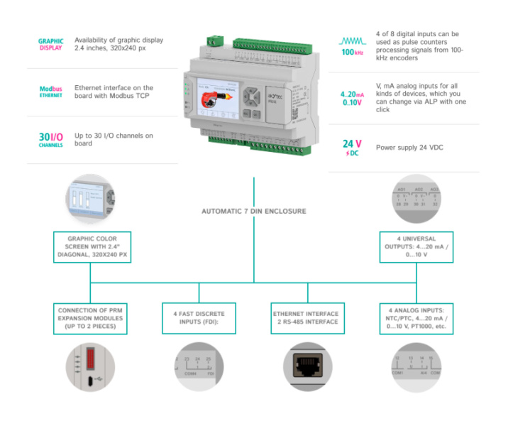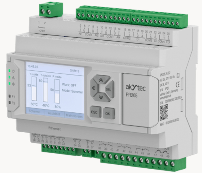 PR205 augstā funkcionalitāte balstās uz bagātīgo I/O klāstu un akYtec ALP programmēšanas izstrādes vidi, kurā pieejami gatavi populārākie funkcijbloki jūsu procesa kontrolei.