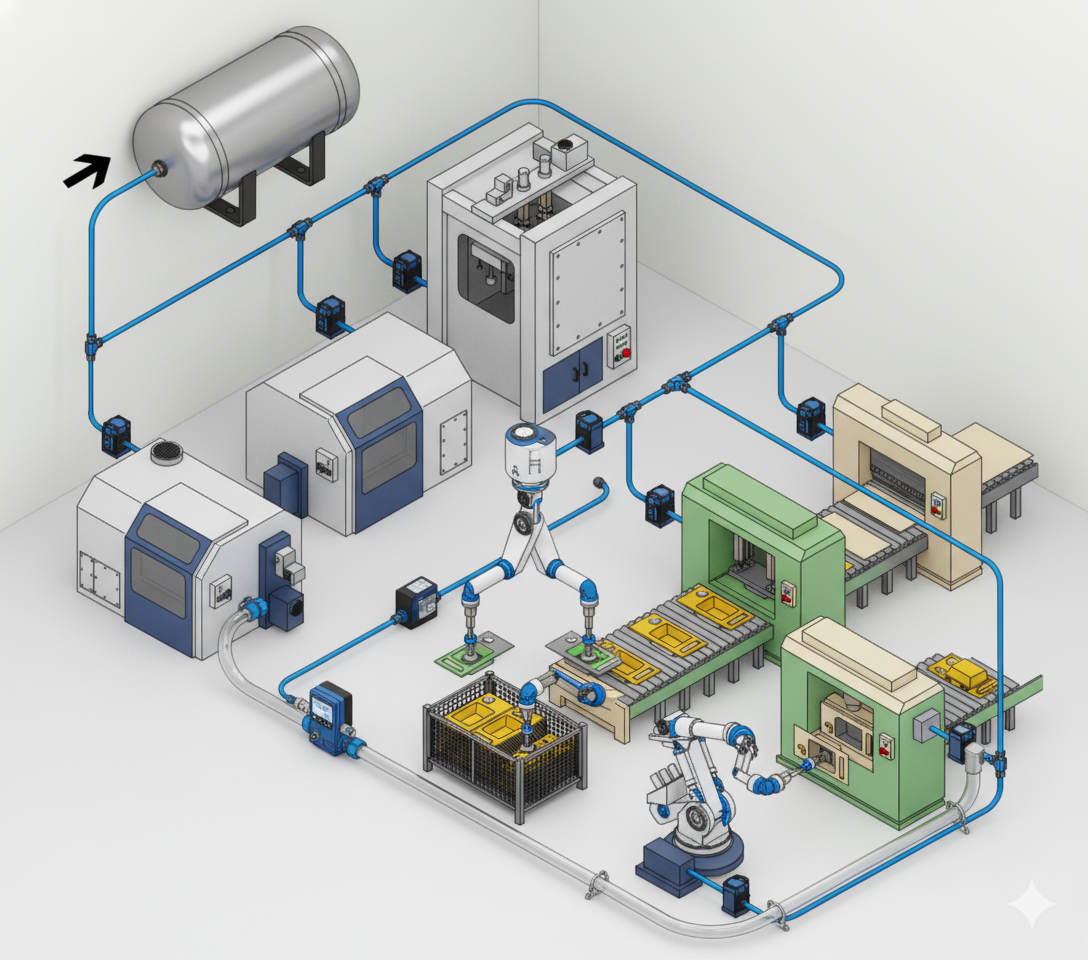 FESTO plūsmas sensori ir augstas precizitātes ierīces, kas paredzētas saspiestā gaisa, gāzu un šķidrumu plūsmas mērīšanai, uzraudzībai un diagnostikai. Tie palīdz nodrošināt energoefektīvu ražošanu, savlaicīgi identificējot noplūdes, plūsmas izmaiņas vai sistēmas darbības traucējumus. Plūsmas monitorings ļauj īstenot profilaktisko apkopi un procesu uzraudzību reāllaikā, tādējādi novēršot iekārtu apstāšanos un samazinot izmaksas.