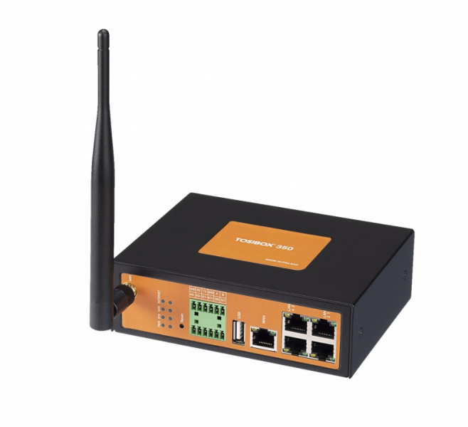 Tosibox 350 ir kompakta, visaptveroša savienojamības ierīce, kas nodrošina stabilu attālināto piekļuvi visā pasaulē. Tā piedāvā četrus LAN ethernet portus, digitālo I/O atbalstu un līdz 10 Mbps VPN caurlaidspēju. Ierīcei ir iebūvēts WiFi un TosiOnline automātiska savienojuma atjaunošanas funkcija.