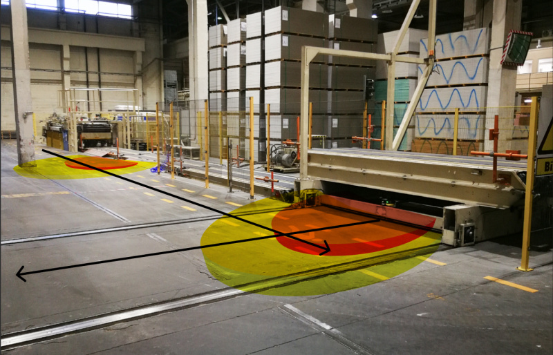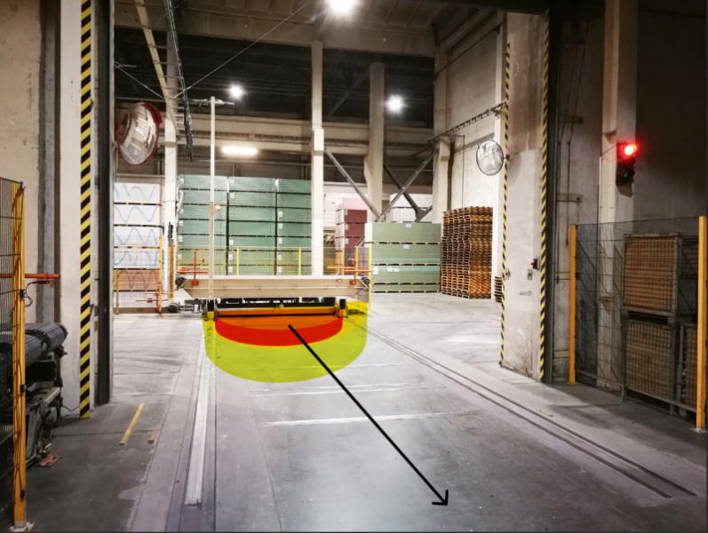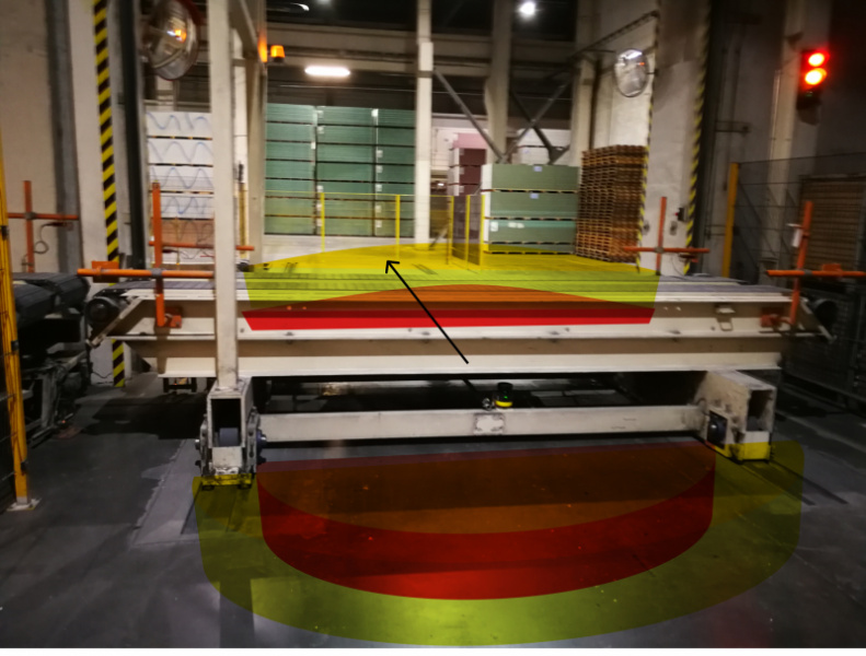 Automātiskā iekārta var pārvietoties pa ražotnes zonām, kur pastāvīgi atrodas un pārvietojas arī darbinieki un noliktavas tehnika. Tāpēc automātiskās iekārtas apturēšana brīdī, kad darbinieks vai tehnika atrodas iekārtas kustības zonā, ir ļoti svarīga.