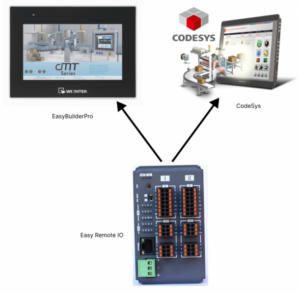 Ar Weintek I/O moduļiem Jūs līdz minimumam varat samazināt šo laiku. Ar EasyRemote I/O konfigurācijas programmatūru, Jūs varat izveidot specifisko ieeju/izeju moduļu kombināciju un iegūt attiecīgos importa failus pat bez fiziskiem moduļiem.
