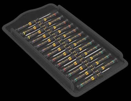 Elektrostatiski nostiprināts Wera Micro skrūvgriežu 25 daļu komplekts. Komplektācijā iekļautie skrūvju profili ir īpaši piemēroti lietošanai mobilajos tālruņos un planšetdatoros. Droša aizsardzība pret elektrostatisko enerģiju un ar to saistītiem bojājumi
