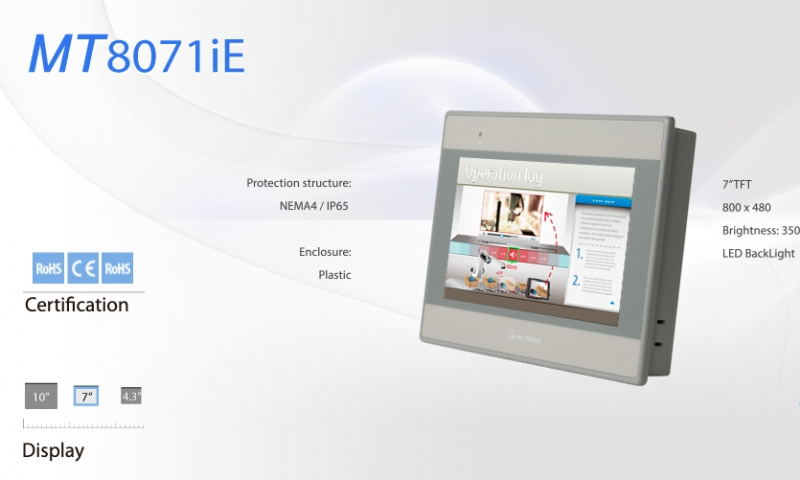 OUT OF PRODUCTION, Панель HMI, MT8071iE 7.0” TFT 800 x 480px, Cortex A8, 600MHz, 128MB, RS-485, RS-232, USB, Weintek