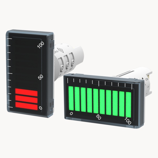 Indicator 10 sections, red/green, 4...20 mA, 0...10V, 10...30VDC, 22,5mm, ITP15 AkYtec