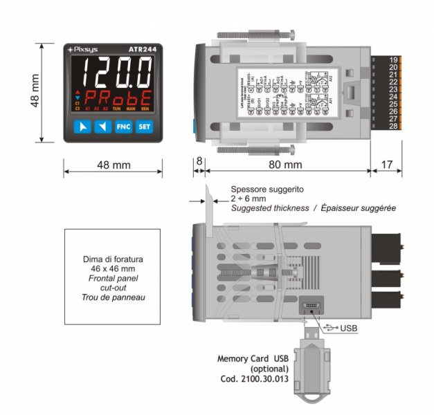 PID контроллер 24-230V AC, RS-485, ATR244-12ABC-T Pixsys
