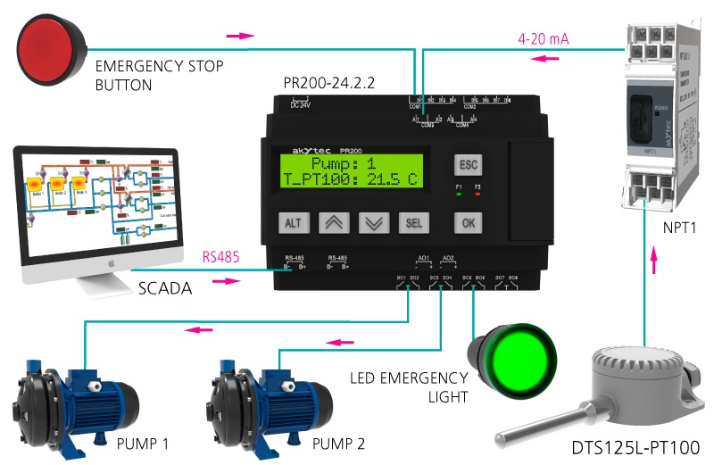 Programmable Relay, 24VDC, 8DI + 6DO, LCD, 1xRS485 (Modbus RTU/ASCII) PR2002411 Akytec