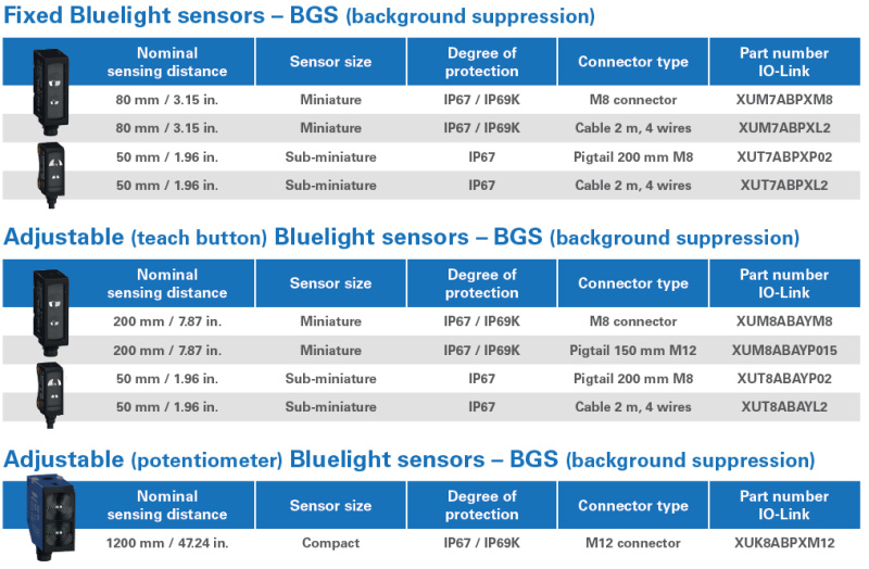 Photoelectric sensors XUT8, BGS, Blue light, Sn 100mm, IO-Link, Cable 2m, XUT8ABAYL2 Telemecanique