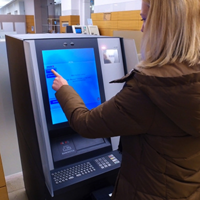 Банкоматы являются классическим примером HMI, так как их сенсорные экраны и подсвеченные PIN-клавиатуры позволяют клиенту обслуживать себя 24/7 без присутствия банковского сотрудника. Для защиты транзакций устройства используют валидацию EMV-чипов и зашифрованные PIN-пад модули, соответствующие руководствам безопасности PCI. Современные версии также предлагают поддержку NFC или бесконтактных платежей, экраны с защитой конфиденциальности и защиту от подглядывания через плечо. В результате пользователь может не только снимать наличные или проверять баланс, но и оплачивать счета и выбирать язык, сохраняя удобство и безопасность в одном интуитивно понятном интерфейсе.