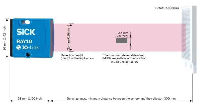 RAY10-AB1GBL Reflex Array Photoelectric retro-reflective sensor Detection height: 25 mm; Cable 4-wire, 2 m 1093745 Sick